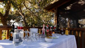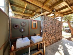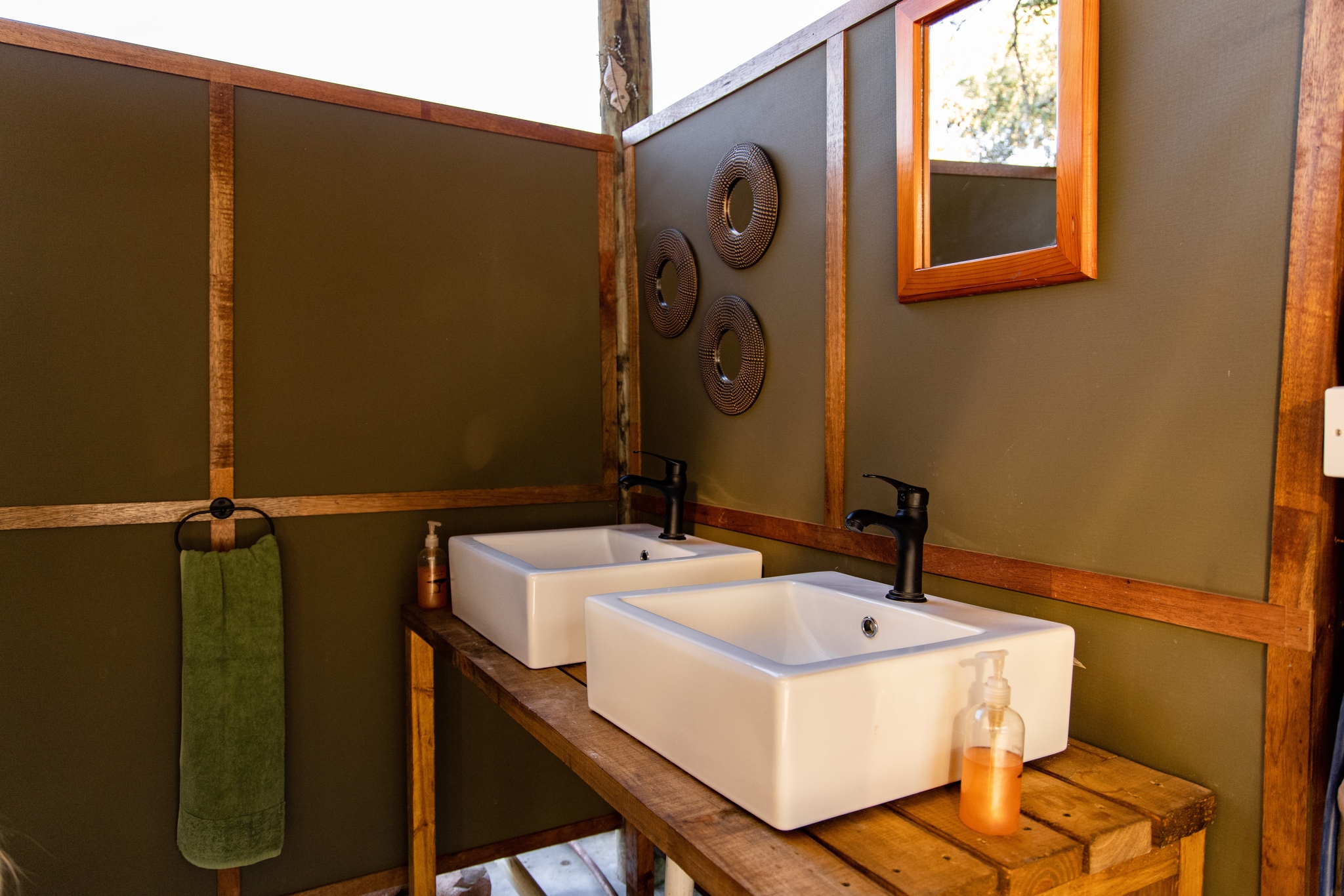There are on-site ablutions under the deck which consist of flush toilets and hot water showers and our catering staff produce mouth-watering meals from the fully-equipped kitchen incorporated underneath the deck.
