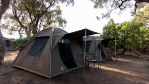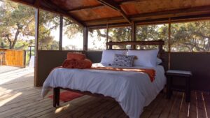 Accommodation at Eagle View Star Deck consists of the option of sleeping in a safe enclosed upper section of the deck or, alternatively, on comfortable camp cots in spacious dome tents.