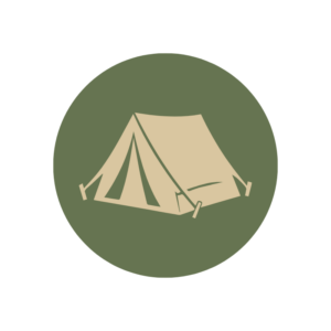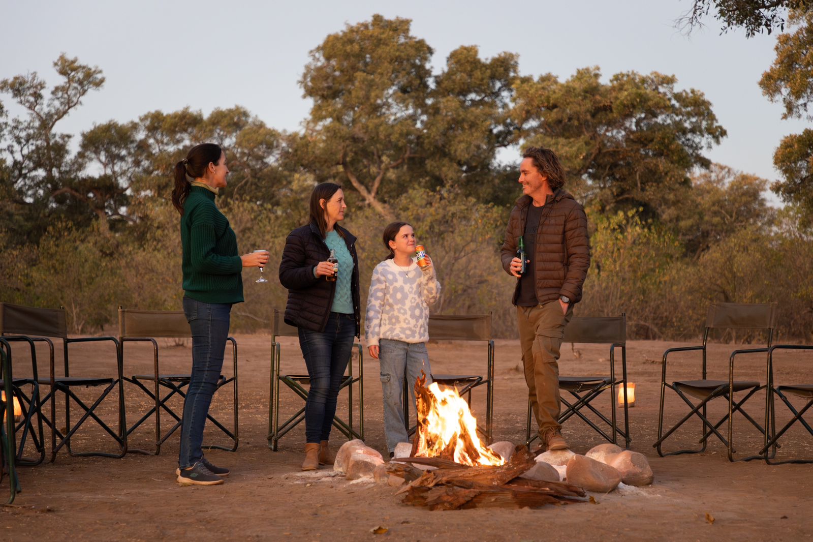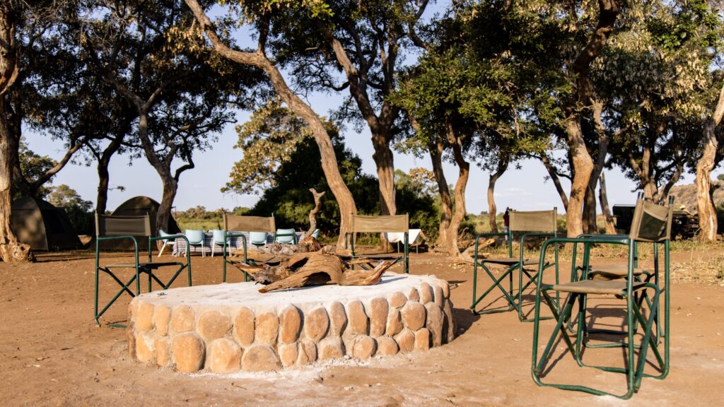 A warm and welcoming fire area forms the focal point of the camp away from the deck.