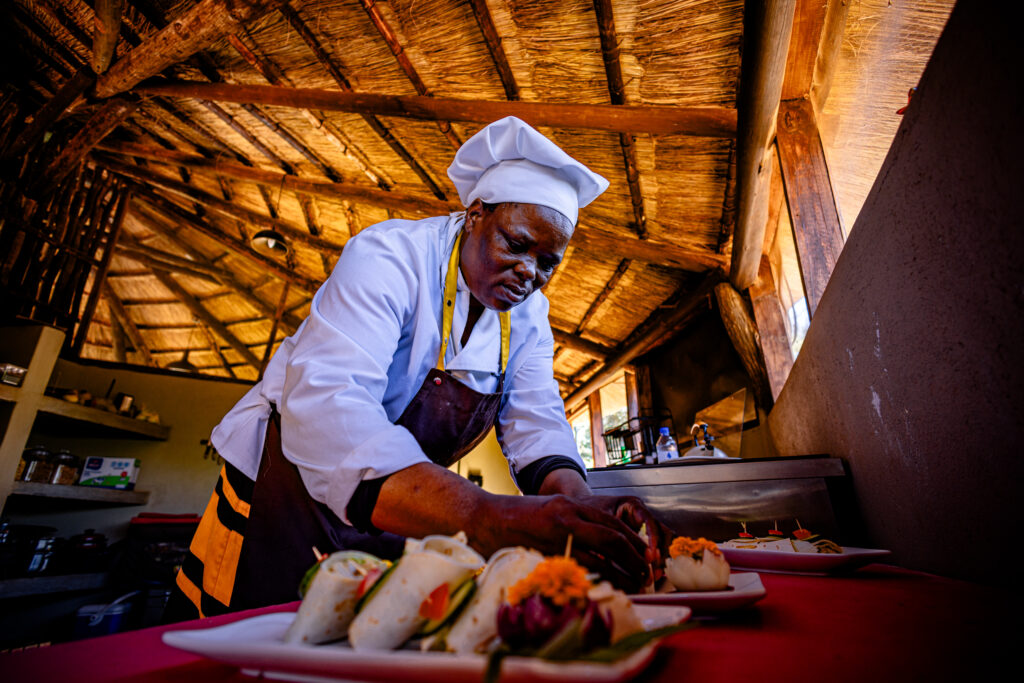 Our Chefs will prepare four delicious meals a day, including a light cold breakfast before the morning game drive, cooked brunch upon your return, an afternoon tea and a 3-course dinner. Meals are served on the terrace overlooking the waterhole, or alongside a communal firepit area.