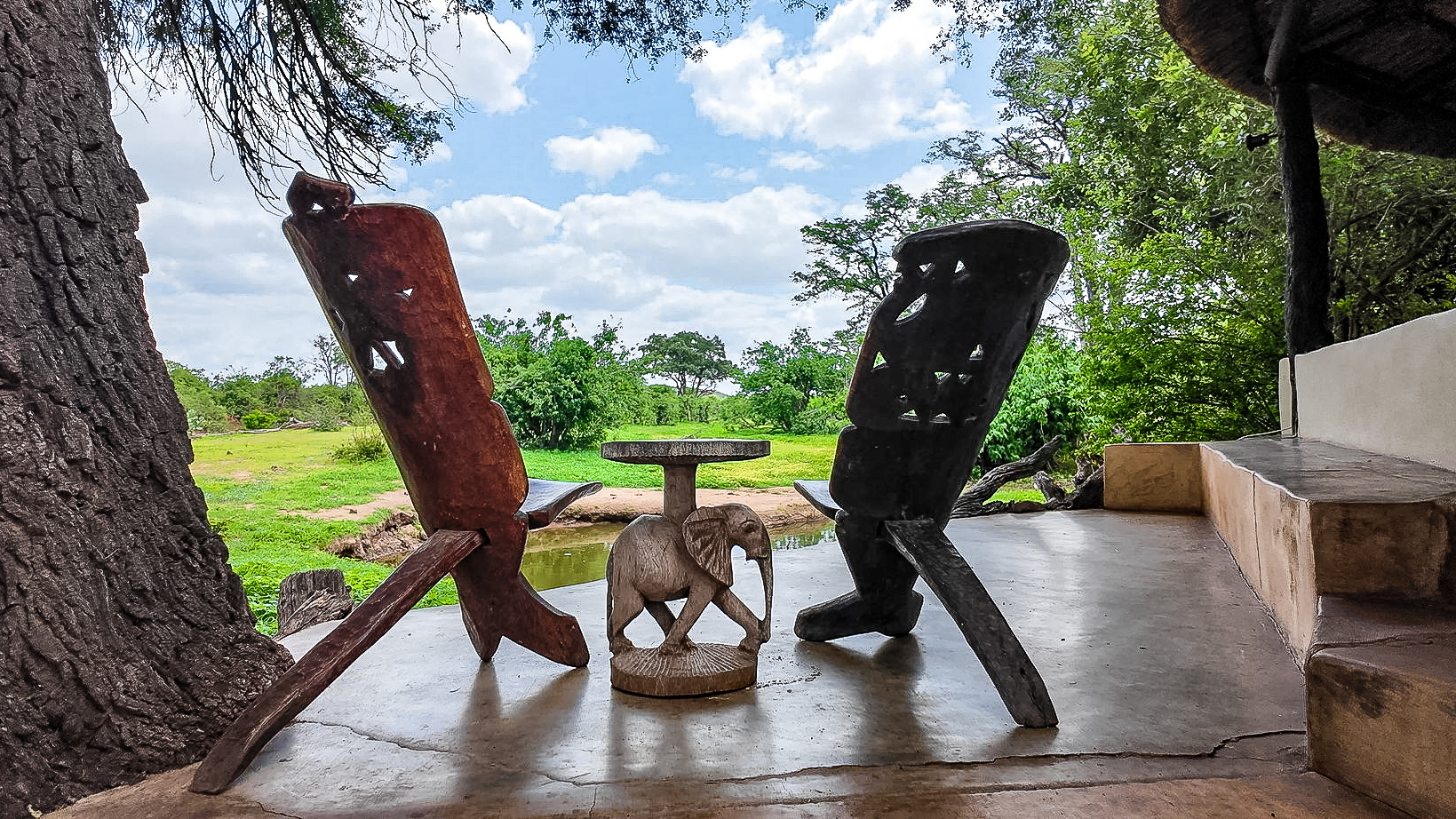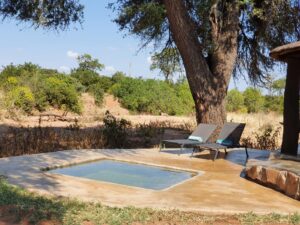 Lions are common in this area, and game such as Elephants, Leopard, Hyaena, Bushbuck, Bush Pig, Warthog and African Wild Cat may possibly be seen drinking at the waterhole just below the camp.