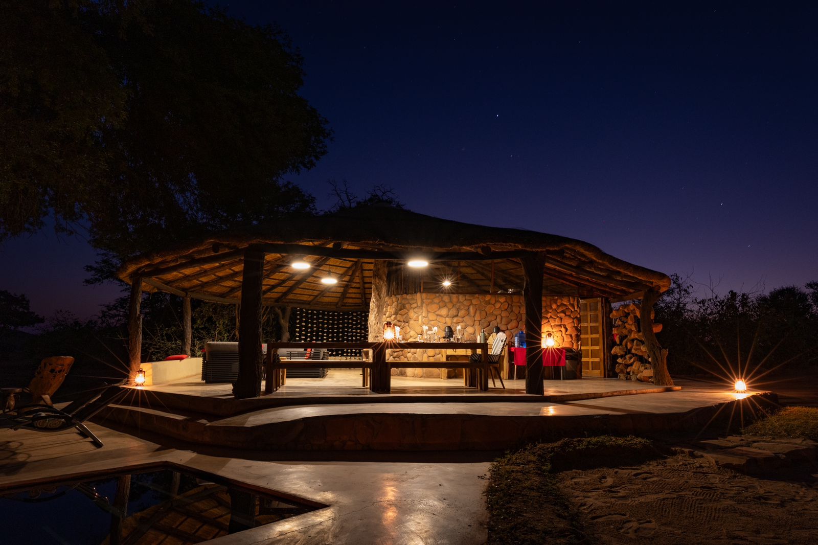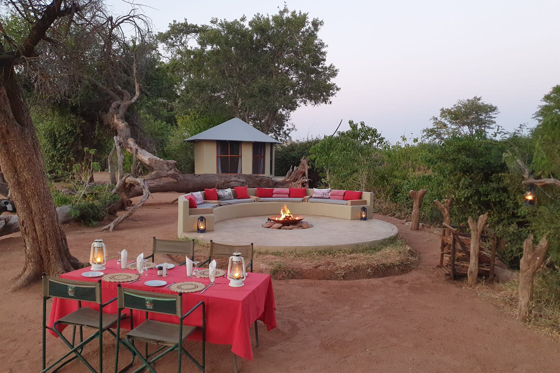 A firepit and braai area offers guests a place to relax in the evenings, reminiscing over the days events and listening to the sounds of the night.